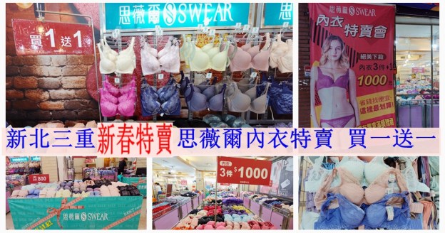 新年換新內在美【新北三重】思薇爾新年特賣會。超多新款新降折扣/超值搶購區:內衣3件$1000 / 2套$1200元 / 3套$1800 元/新降正品內衣降價優惠買一送一/內衣內褲買三送二/ 消費滿6800贈送國際牌吹風機