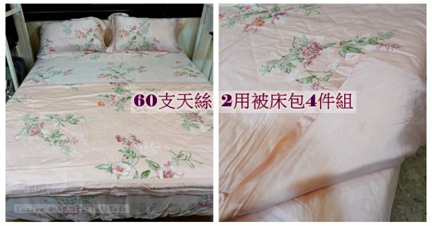 ▼60支天絲兩用被床包4件組: 兩用被+床包+枕頭套2個,特價2980,任選二組5000元,等於一組只要2500元